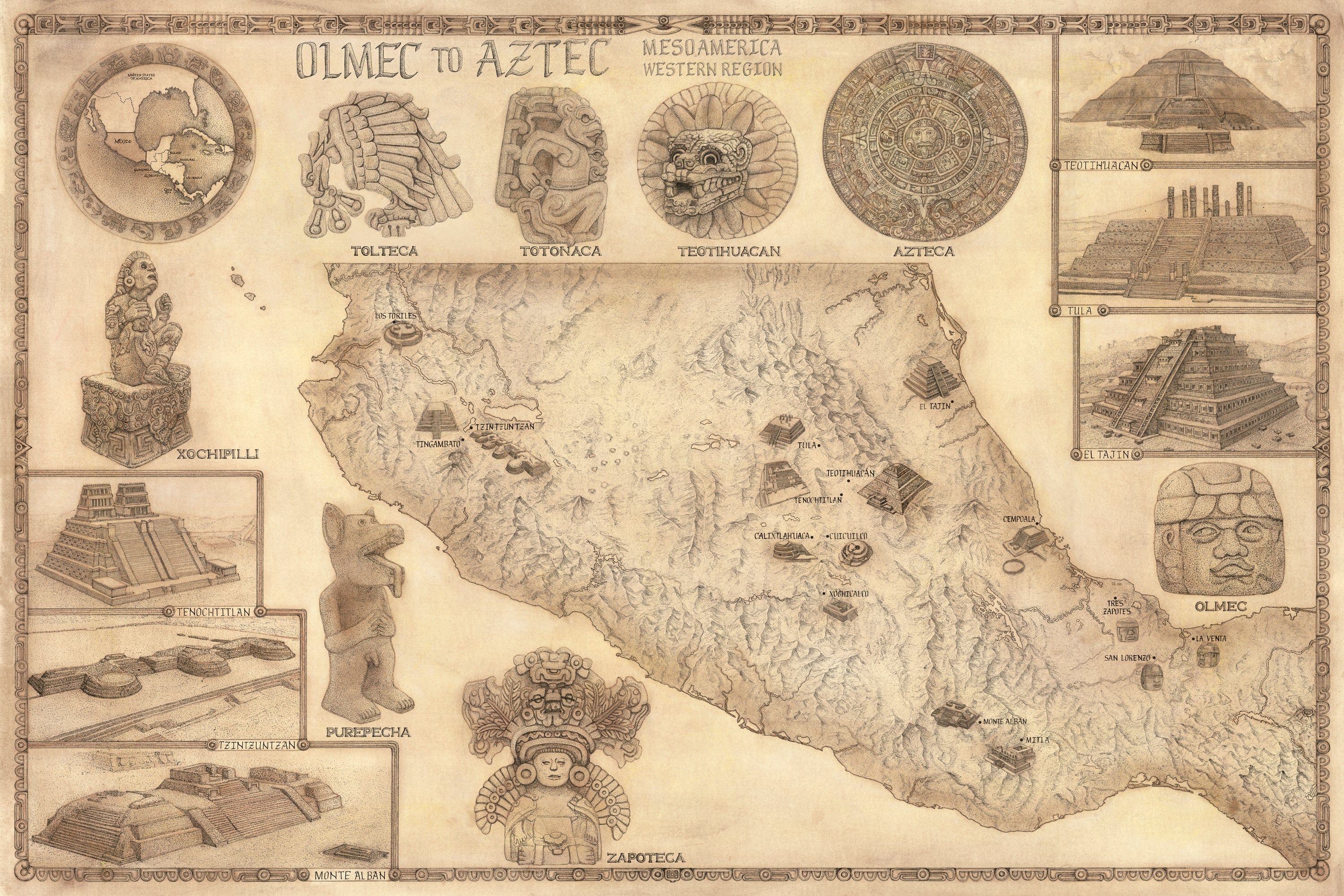 AZTEC MAP Olmecs to Aztecs, map of western MesoAmerica โ King of